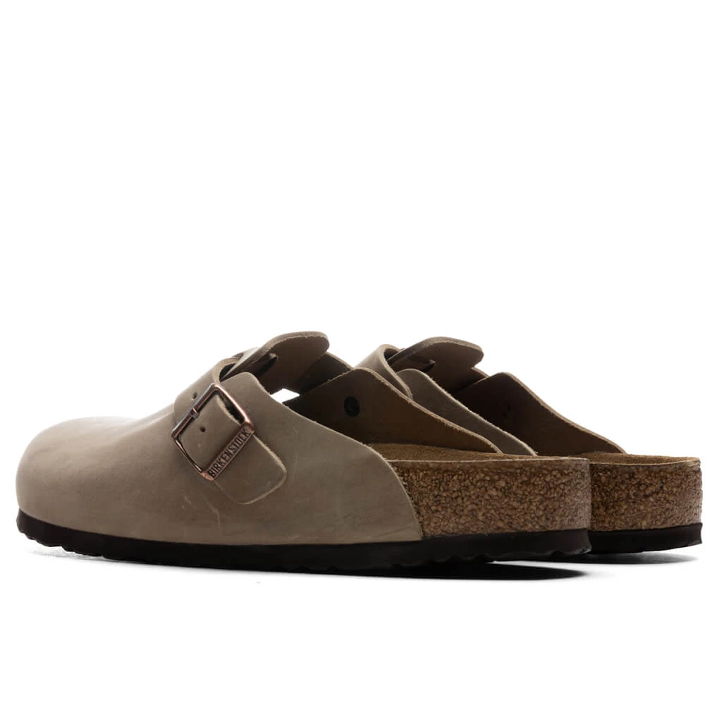 German footwear brand Birkenstock has altered the definition of sandals with their comfortable, high-quality, and versatile designs, as seen in the Wide Boston Soft Footbed. The sophisticated and unique design of this sandal features an oiled nubuck leather upper with a cork-latex footbed. The lining of the footbed contains a suede material, while an authentic EVA sole is placed underneath. A single strap with a metal pin buckle completes the design.
