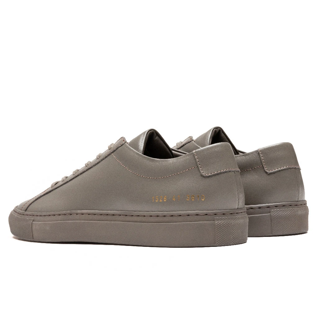 Founded by Prathan Poopat and Flavio Girolami in 2004, Common Projects are best known for their signature gold stamp at the heel highlighting style and size. Assembled in Italy using the highest-quality materials, Common Projects pushes the standard in luxury footwear. Pictured is the Common Projects Original Achilles Low in Clay.