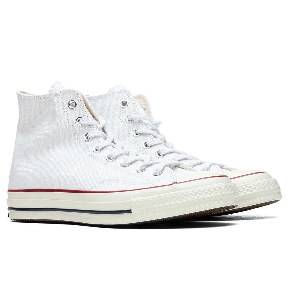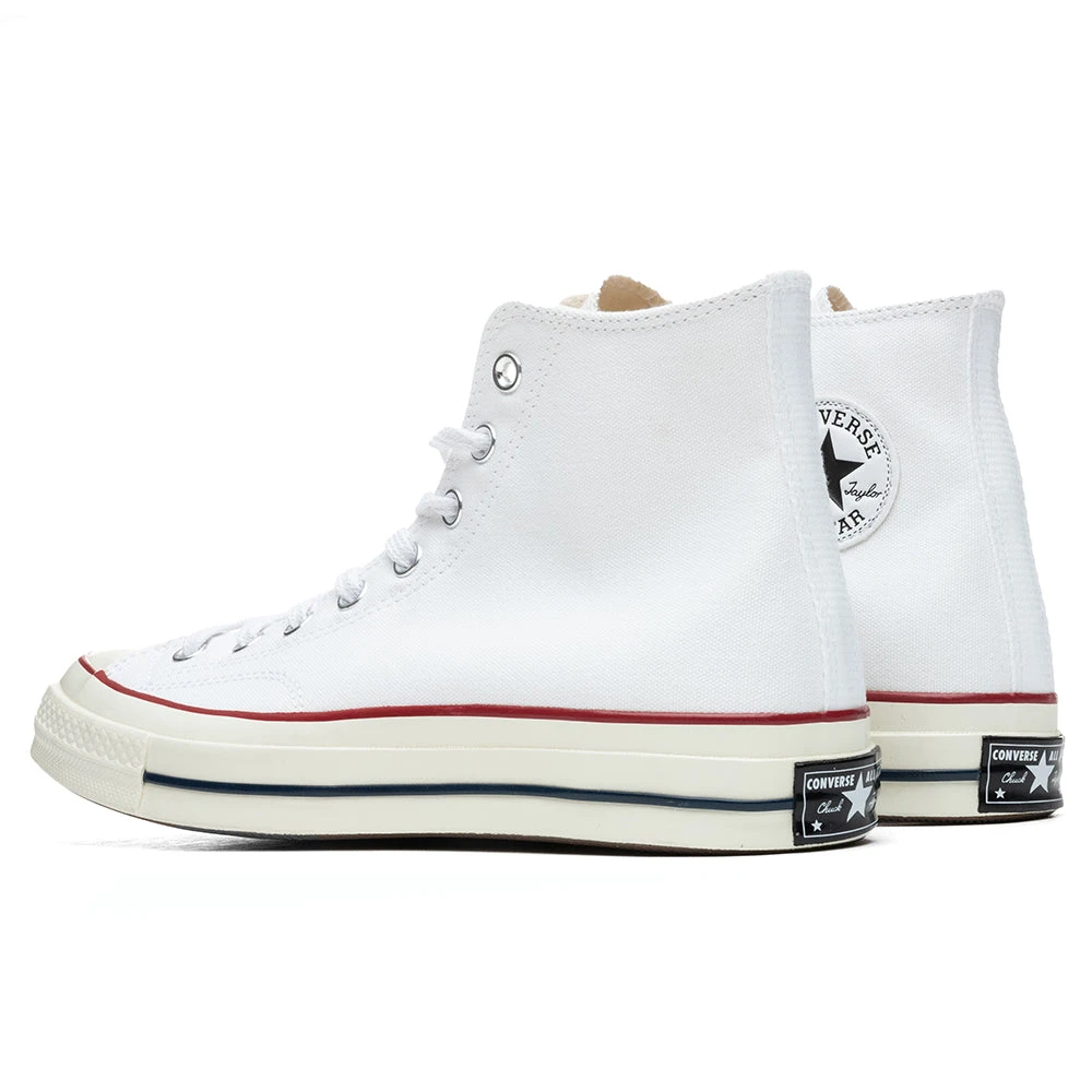 Originally released in 1917, the Converse Chuck ’70 is a re-crafted sneaker that uses modern details to celebrate the original Chuck Taylor All Star from the 1970’s. A rendered version of Converse’s traditional branding is given an elevated finish while the signature canvas upper and vulcanized outsole stick true to form. Metal eyelets and premium cotton laces decorate the tongue, completing its design.