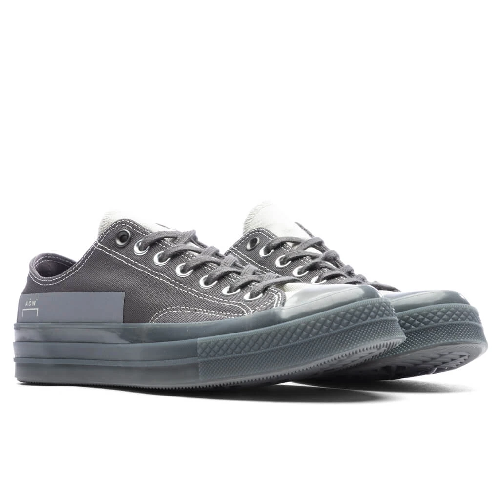 ACW_CNVS presents a mesmerizing reinterpretation of a timeless silhouette, showcasing the latest collaboration in their ever-evolving partnership. This masterpiece emerges from A-COLD-WALL*’s refined design process, where the Chuck 70 receives a meticulous revamp, boasting a stunning translucent sole, eye-catching metallic typographic branding, and elegant matte eyelets that instantly catch the eye. As a final touch, this unique creation is adorned with exquisite custom co-branded detailing, adding a touch of exclusivity to this exceptional piece.