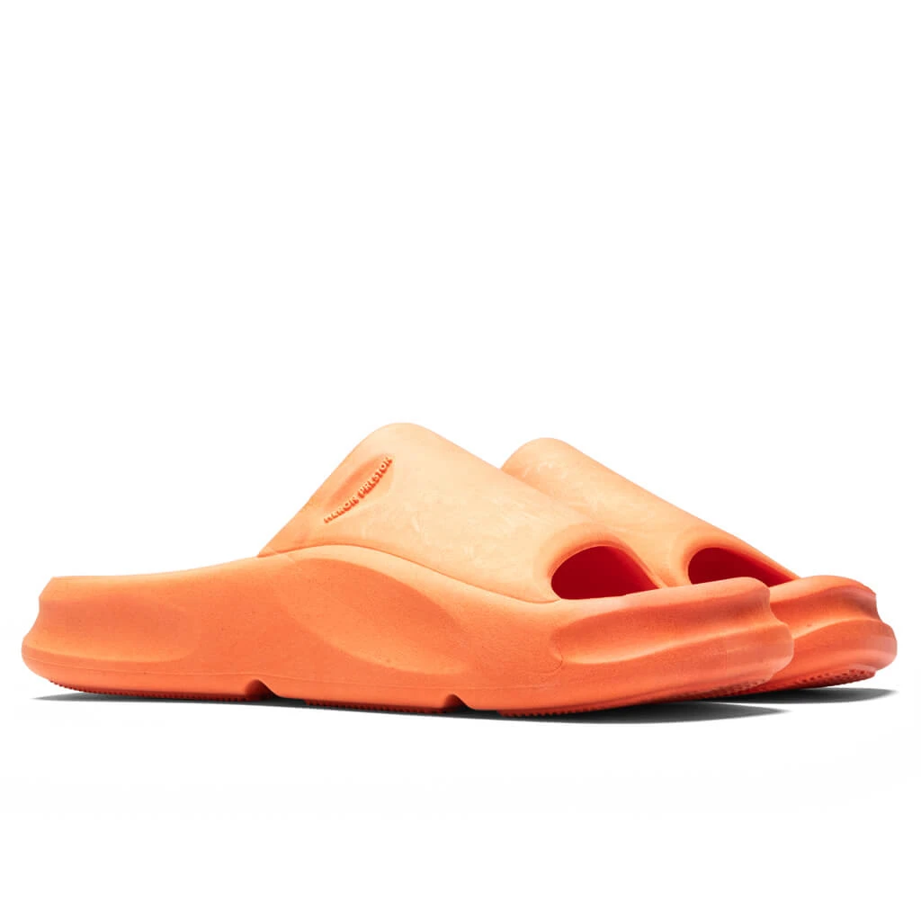 The Heron Preston Eco Moulded Slider is the ideal addition to any footwear collection. The slides feature a complete rubber construction in addition to engraved branding. The slip-on silhouette is finished with a treaded outsole and single strap.