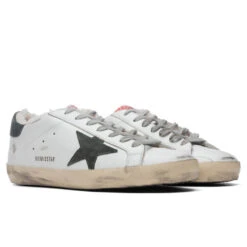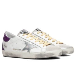 Golden Goose distressed aesthetic is highlighted within the latest Ballstar sneaker. A neutral theme is seen at the upper which is contrasted by a cork-like outsole. Perfect for any occasion, the white base is given contrasting accents and gold labeling. Intricately designed distressed elements are seen throughout while a cotton lace closure gives a secure fit.Â