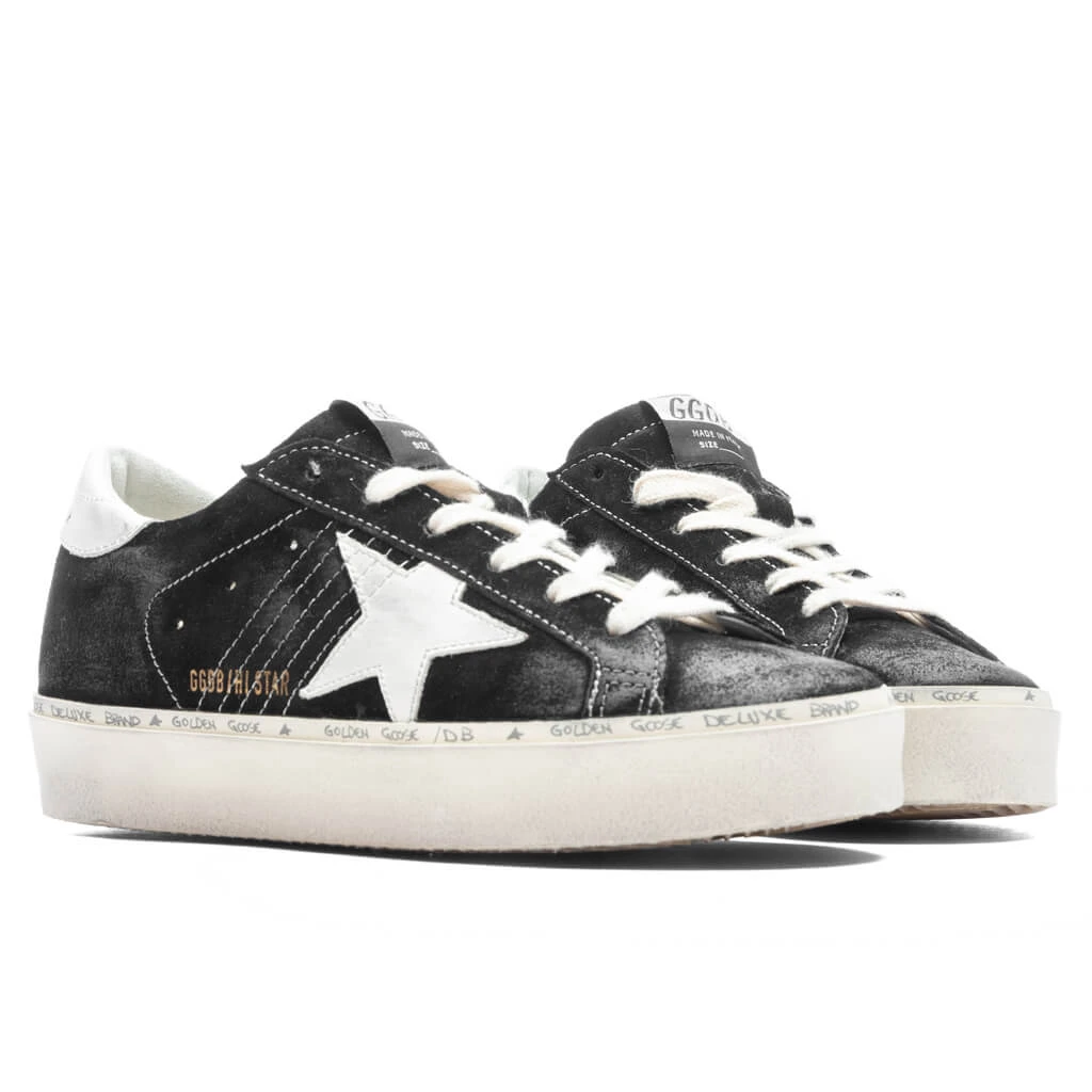 The Golden Goose Women’s Sneakers Leather Suede Hi Star makes a statement with its high-top design and nappa leather upper. A leather star is seen, while the hand-applied distressing makes a statement. The cow leather and cotton lining adds optimal comfort. A rubber sole underneath secures the design.