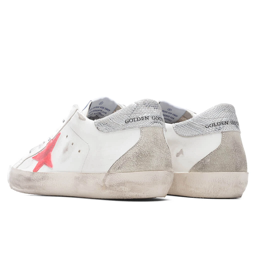 Elevate your go-to pair of sneakers with the latest rendition of the Golden Goose Women’s Super-Star. Featuring a leather and suede upper, this signature design spotlights a lace-up front with logo detailing placed throughout. Perforated sides make an appearance, while the lining consists of a blend of leather and terrycloth. A signature star patch makes its way to the side, while the snake-embossed metallic leather back counter. Intentional distressing are placed throughout, while the rubber outsole completes the design.