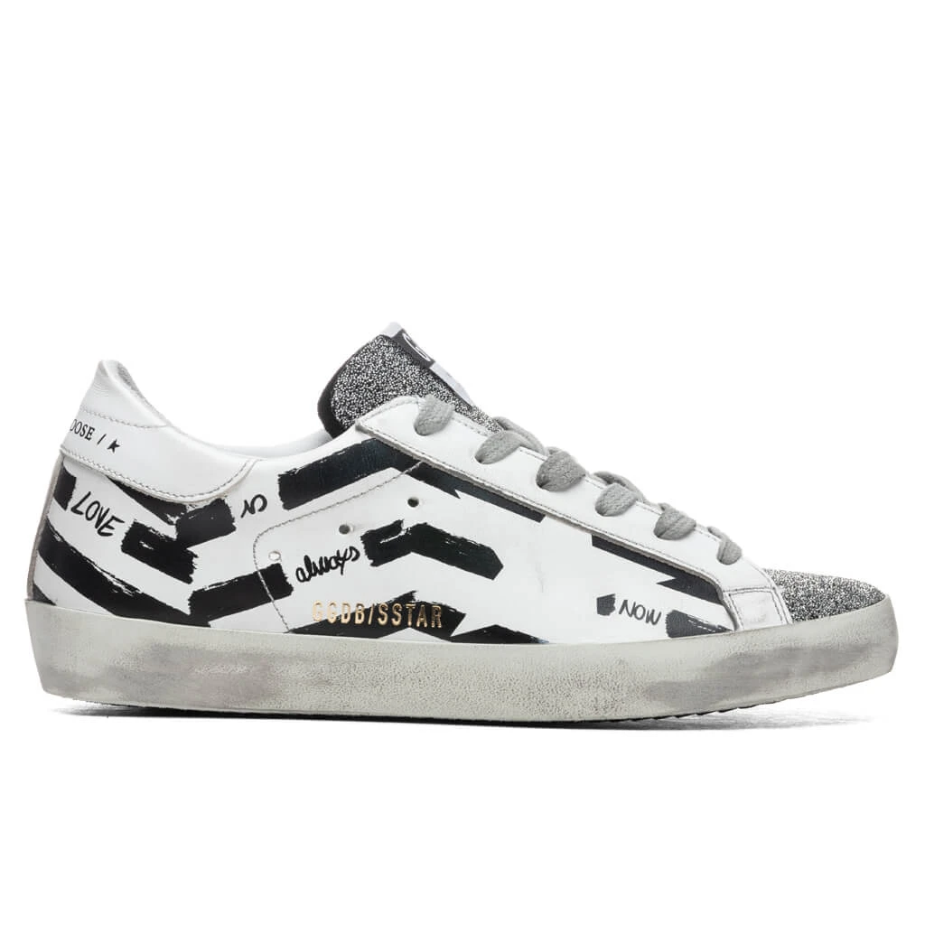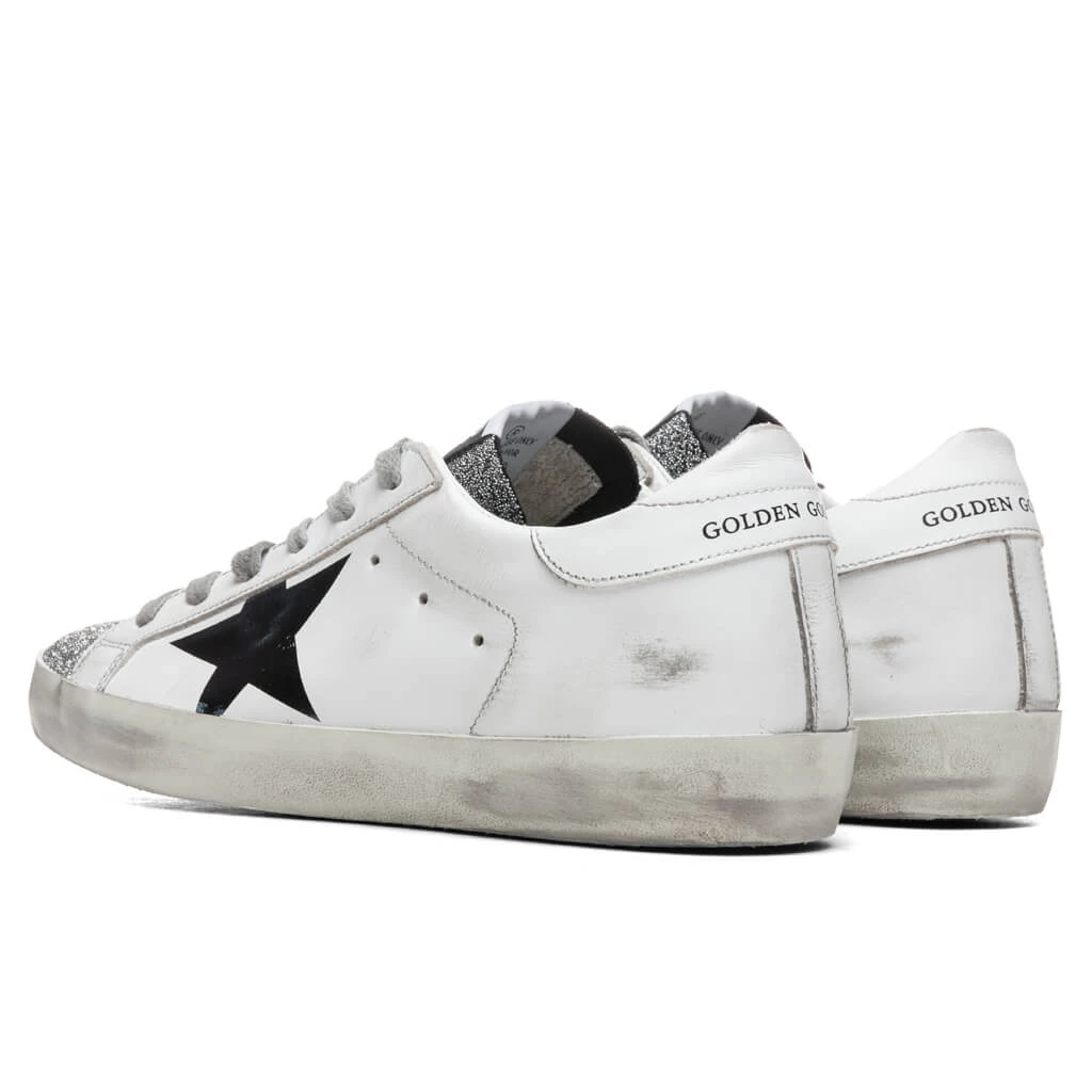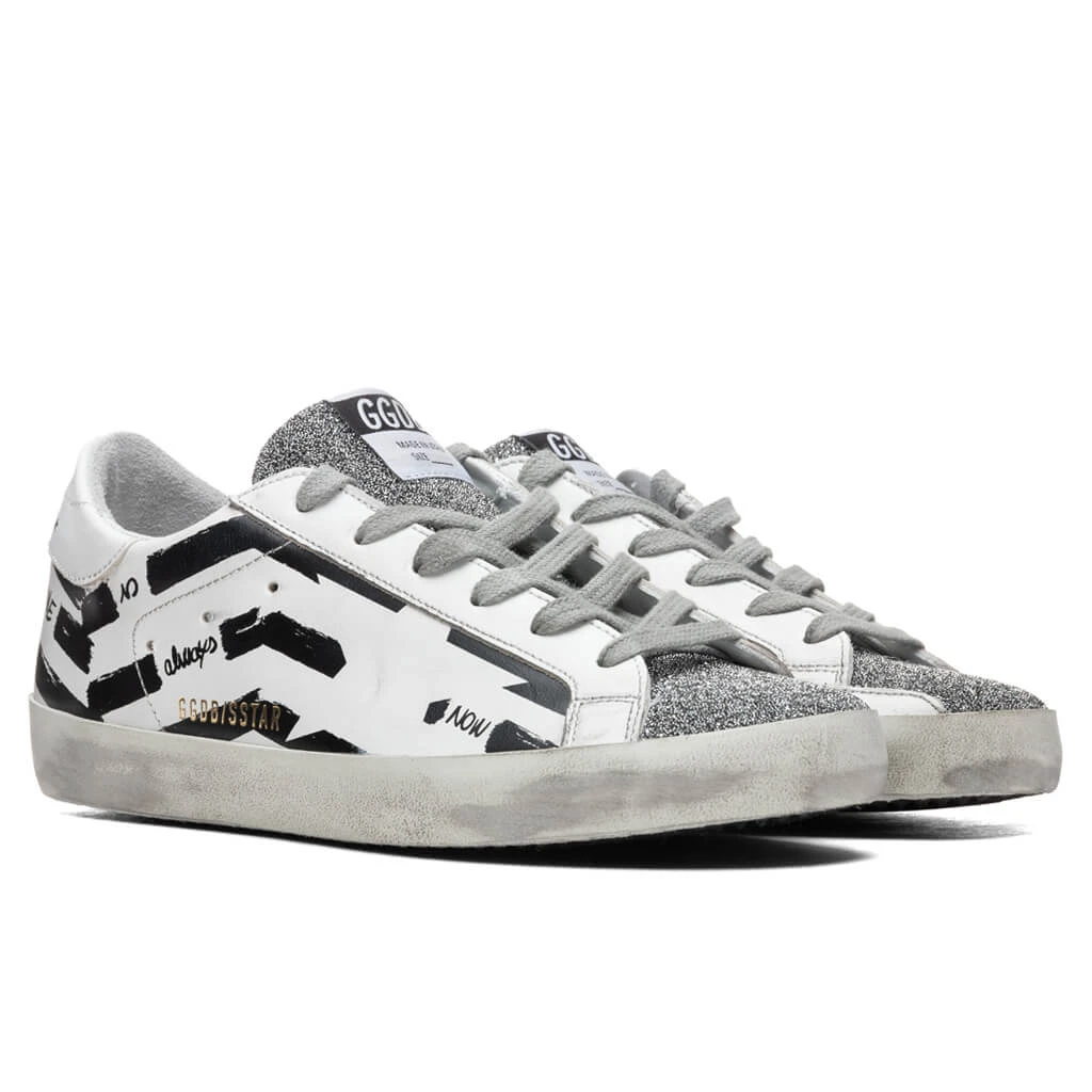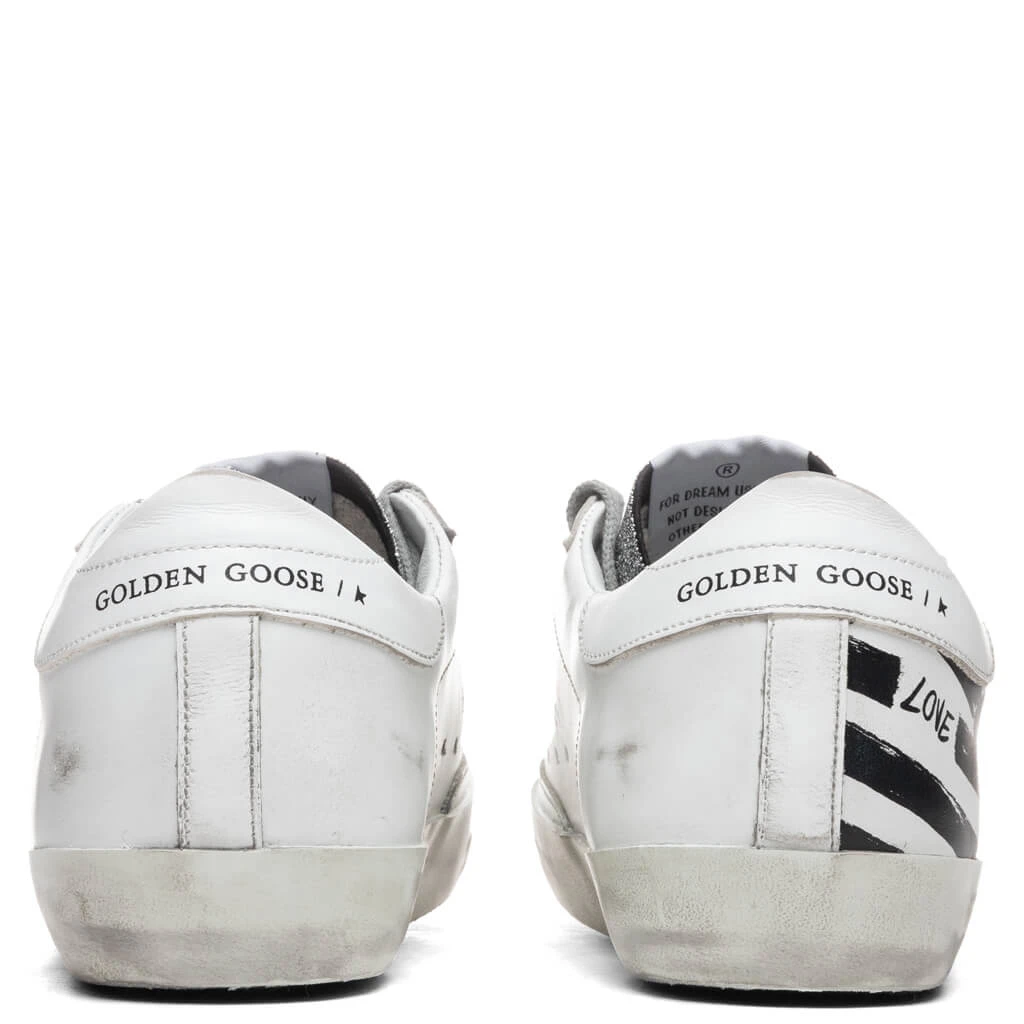 Golden Goose Women’s Super-Star Sneakers – White Silver/Black Flag