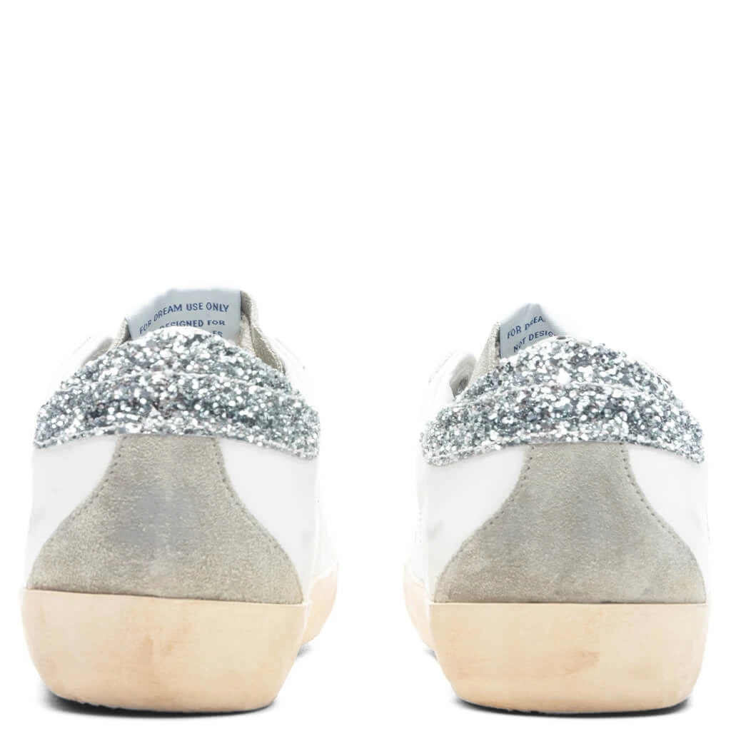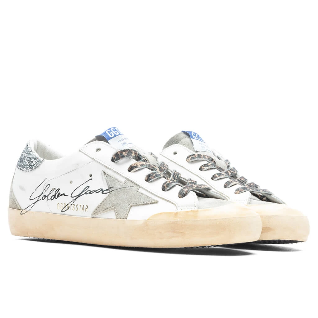 The Women’s Superstar Toe Star and Spur from Golden Goose elevates the everyday sneaker. Featuring a leather upper, the design spotlights a blend of cow leather and cotton within the lining. The suede toe box makes an appearance along with a glitter star. Signature details are placed throughout, while the leather heel and midsole make an additional statement. The rubber outsole and intentional scuffing/distressing complete the rest of the look.