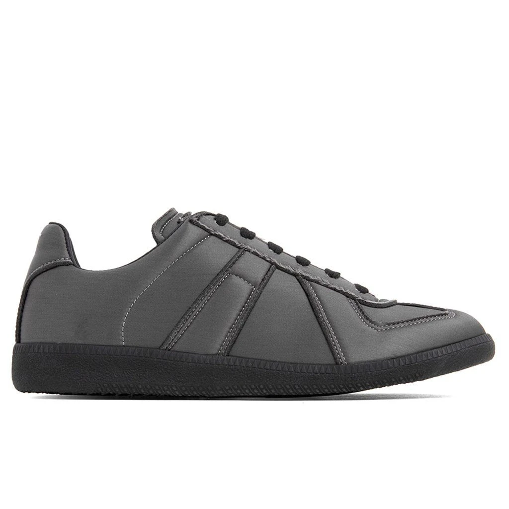 World renown French luxury brand Maison Margiela produces some of the finest pieces of today’s menswear, fine jewelry, footwear, and other goods. Created by Martin Margiela, the collections showcase deconstructive and avant-garde designs with unique concepts and unconventional craftsmanship. Pictured is the Maison Margiela Replica Low Top in Grey Satin.