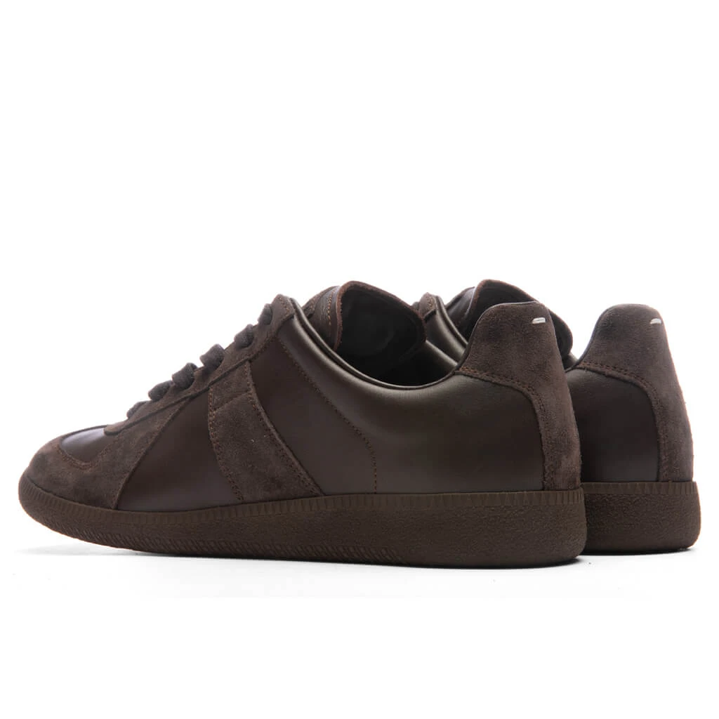 Elevate your go-to sneakers with the latest offering from Maison Margiela. The Replica Low Top features a leather upper with suede paneling overlaying the design. This distinct design also incorporates debossed branding as well as stitched detailing. The gum rubber outsole completes the rest of the look.