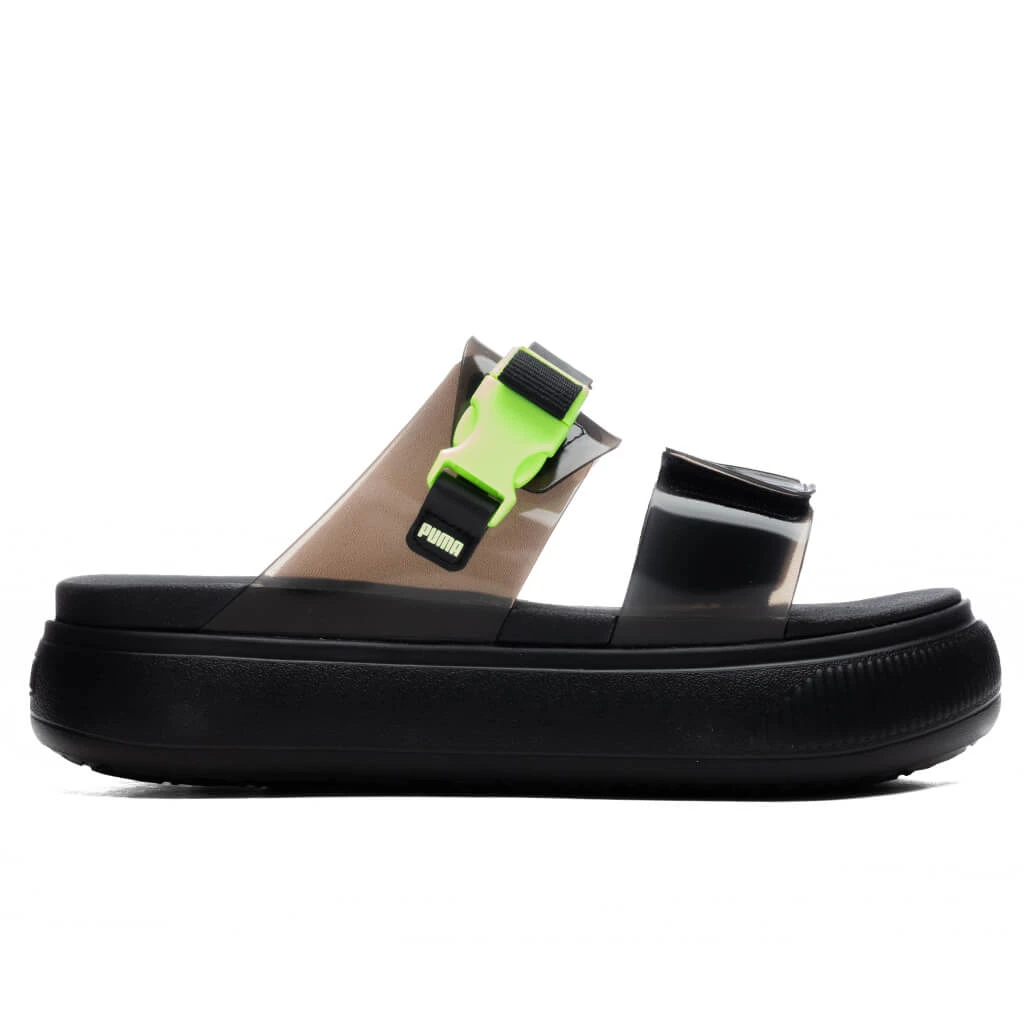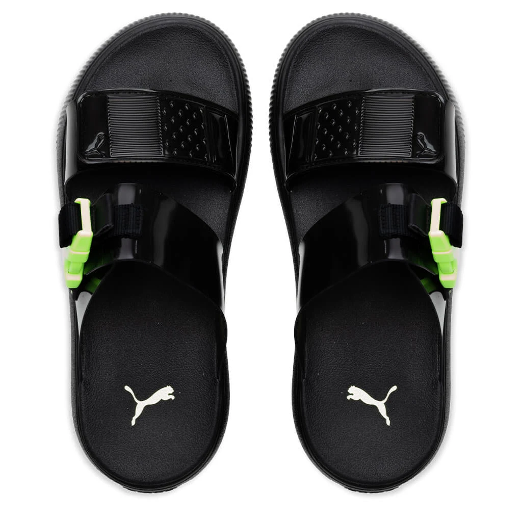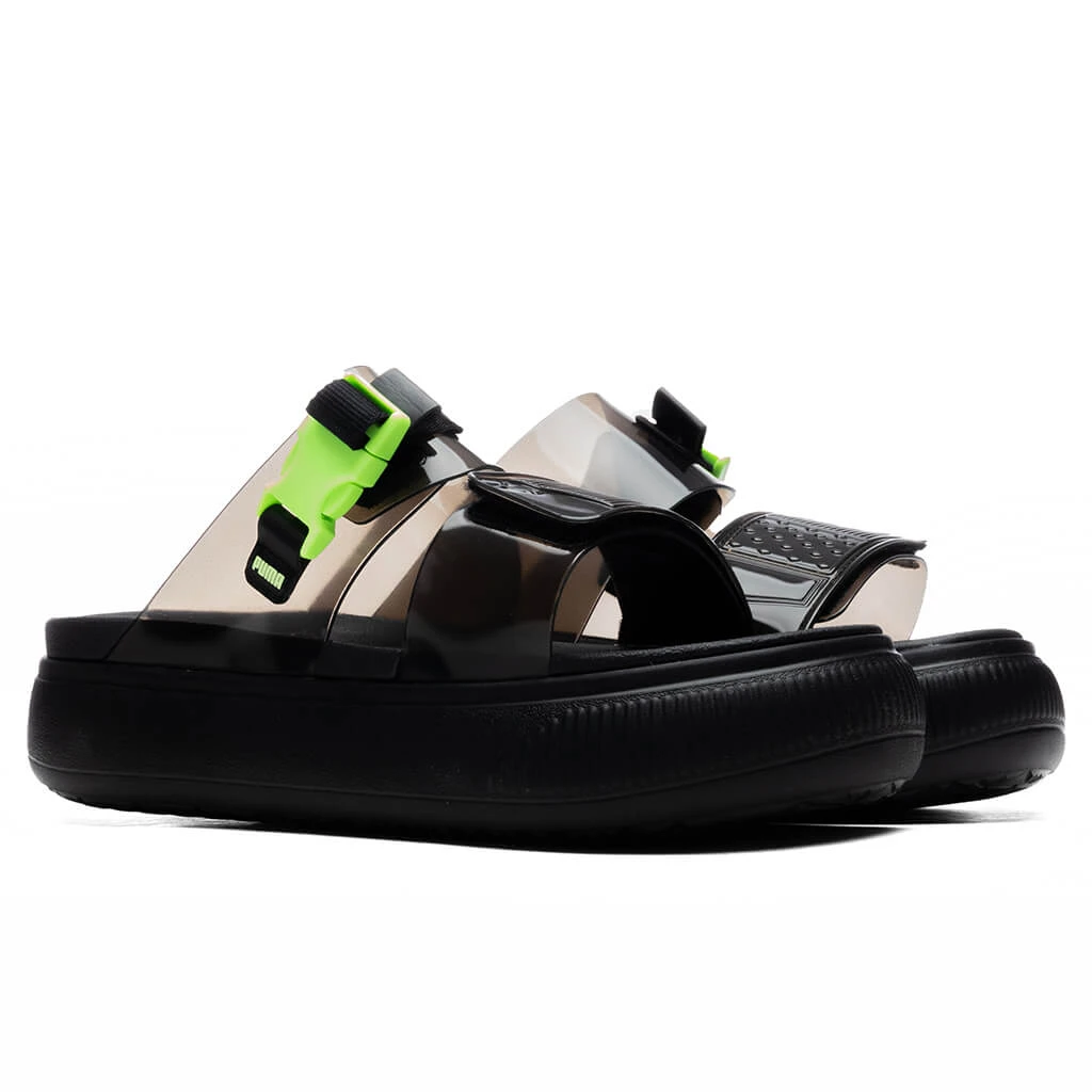 Incorporate a futuristic aesthetic with the Puma Women’s Suede Mayu Sandal. Composed of synthetic leather in the straps, the vamp strap features a hook-and-loop fastening and a Puma Cat logo. The second strap also features a TPU buckle, while the molded footbed displays screen-printed Puma branding as well. The IMEVA midsole and outsole provide additional comfort with each step. The slip-on silhouette is finished with a leather label and debossed Puma branding.
