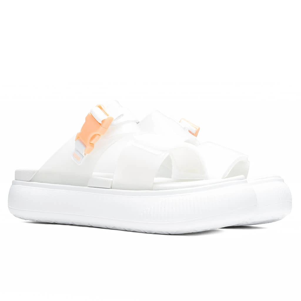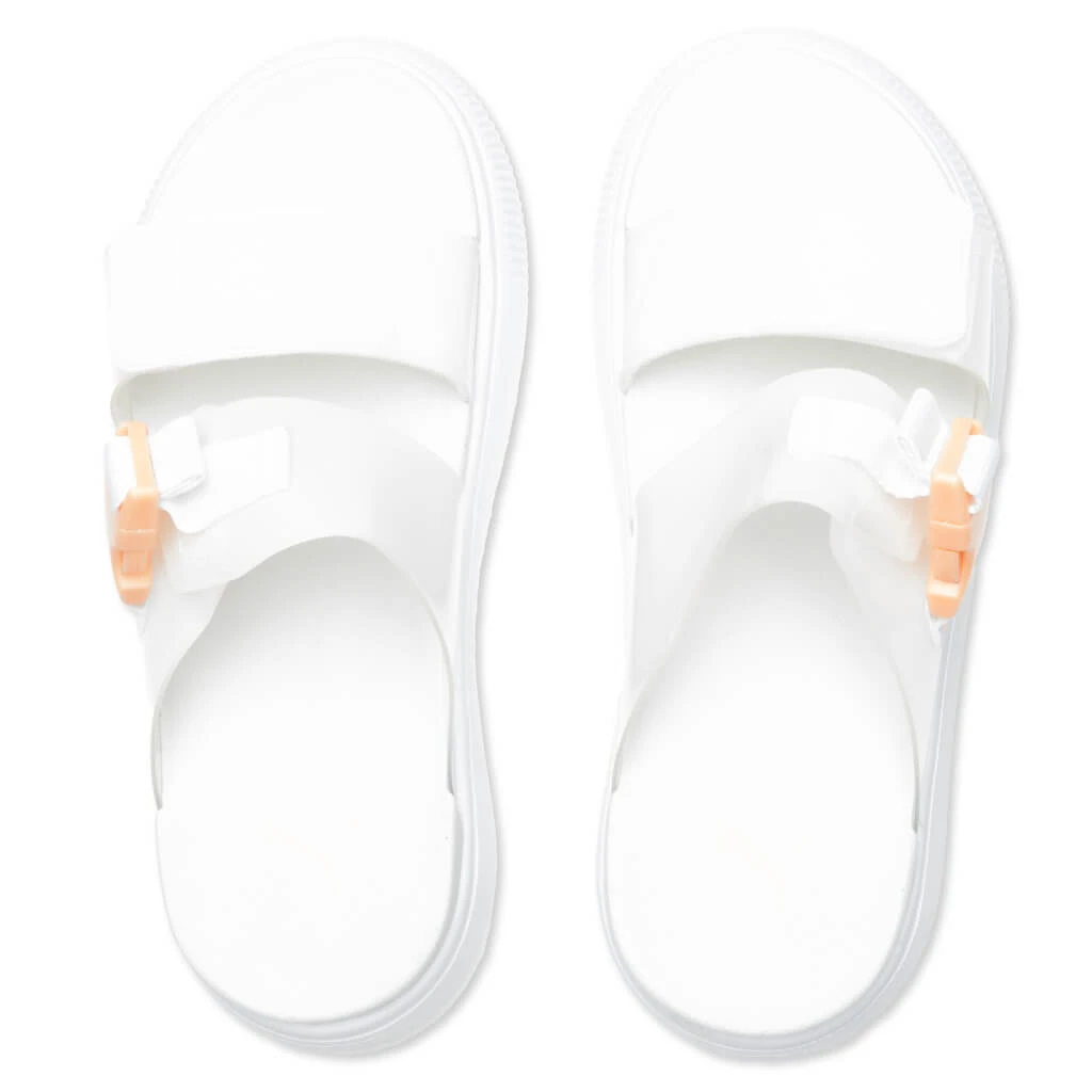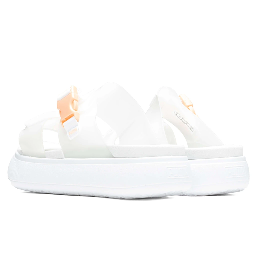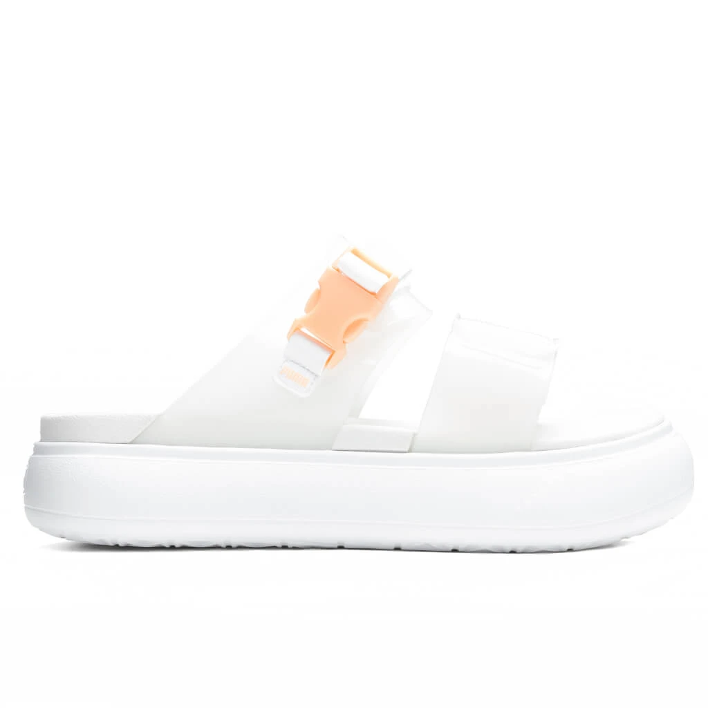 Incorporate a futuristic aesthetic with the Puma Women’s Suede Mayu Sandal. Composed of synthetic leather in the straps, the vamp strap features a hook-and-loop fastening and a Puma Cat logo. The second strap also features a TPU buckle, while the molded footbed displays screen-printed Puma branding as well. The IMEVA midsole and outsole provide additional comfort with each step. The slip-on silhouette is finished with a leather label and debossed Puma branding.
