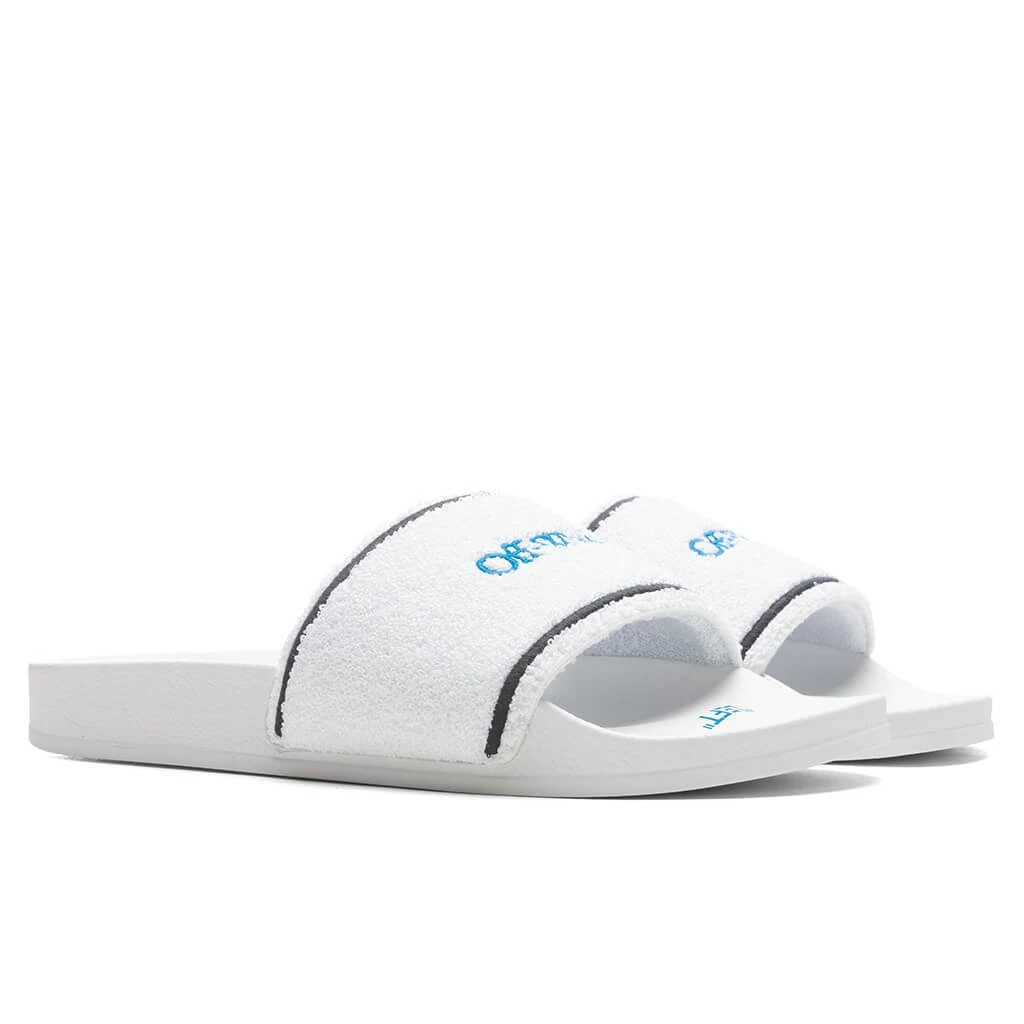 Elevating casual styles, the Towel Embroidery Slider is a quality footwear design that features signature Off-White branding. Designed with a polyurethane outsole, the slides feature printed branding and a conforming footbed for optimal comfort.Â