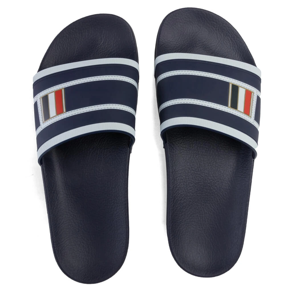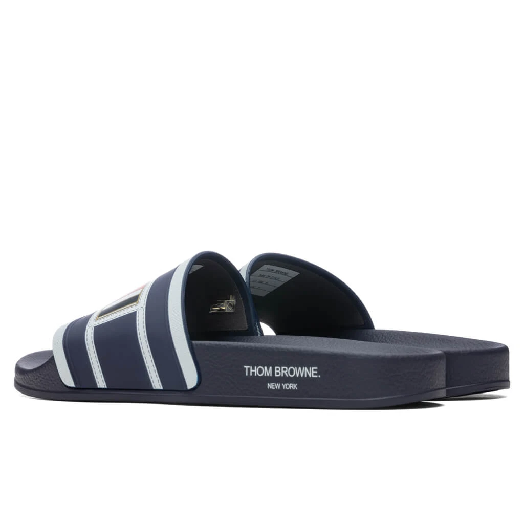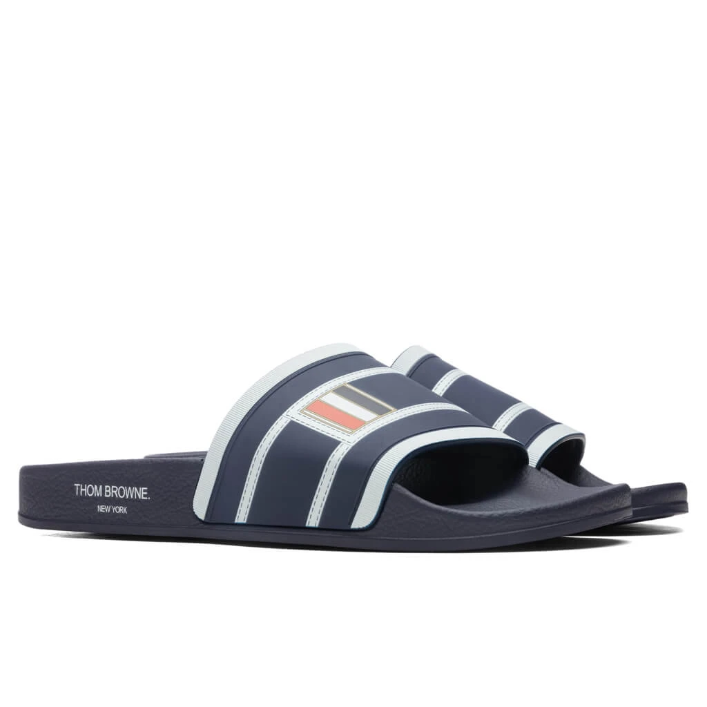 Stay cool during warm weather with the Thom Browne L’oeil Pool Slide. The durable build of the slide is made with quality rubber while the upper highlights the iconic grosgrain ribbon and coloring. The inner divots offer optimal comfort during times of wear.