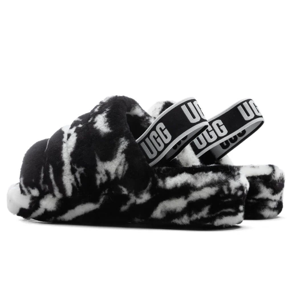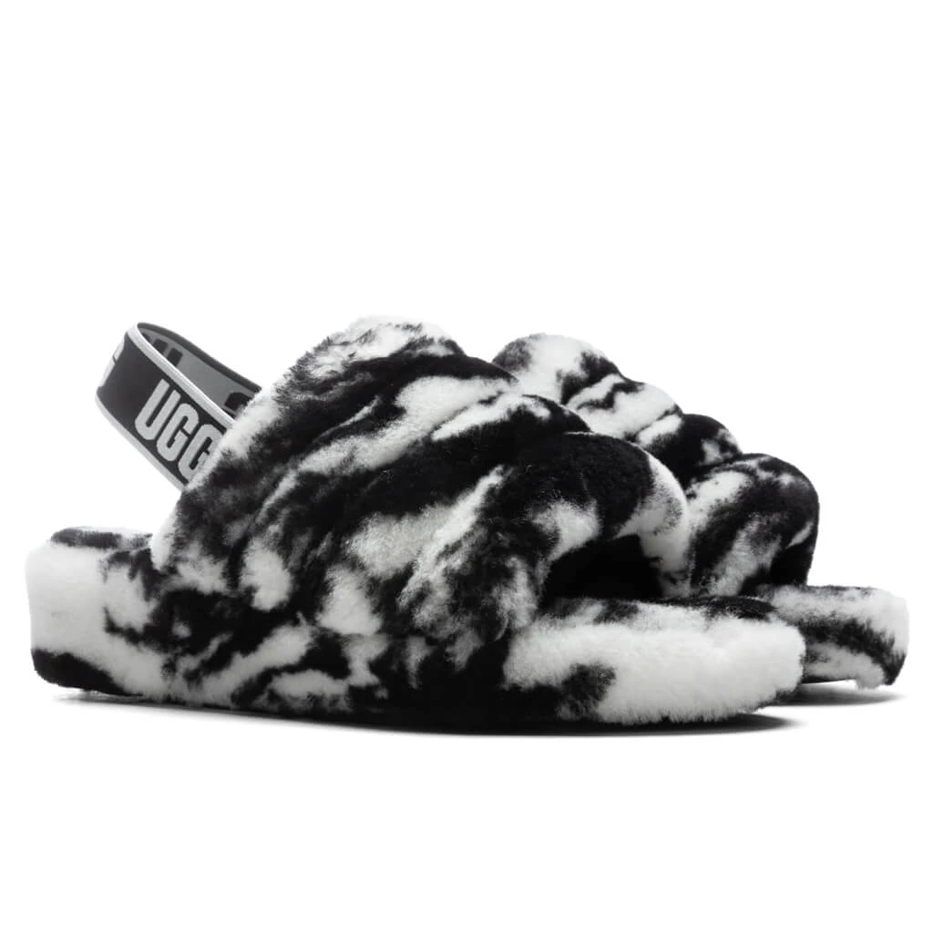 Stand out with the UGG Women’s Fluff Yeah Slide Marble. Made with a plush sheepskin upper, the design is airy and lightweight in its construction. An elastic backstrap and durable outdoor outsole allow for enhanced durability during all times of wear, while the sheepskin lining, insole, and midsole enhance the design’s comfortable component. The slides are complete with a woven UGG logo at the insole.