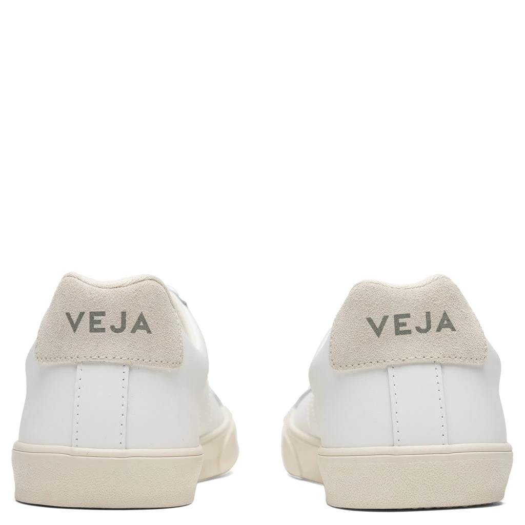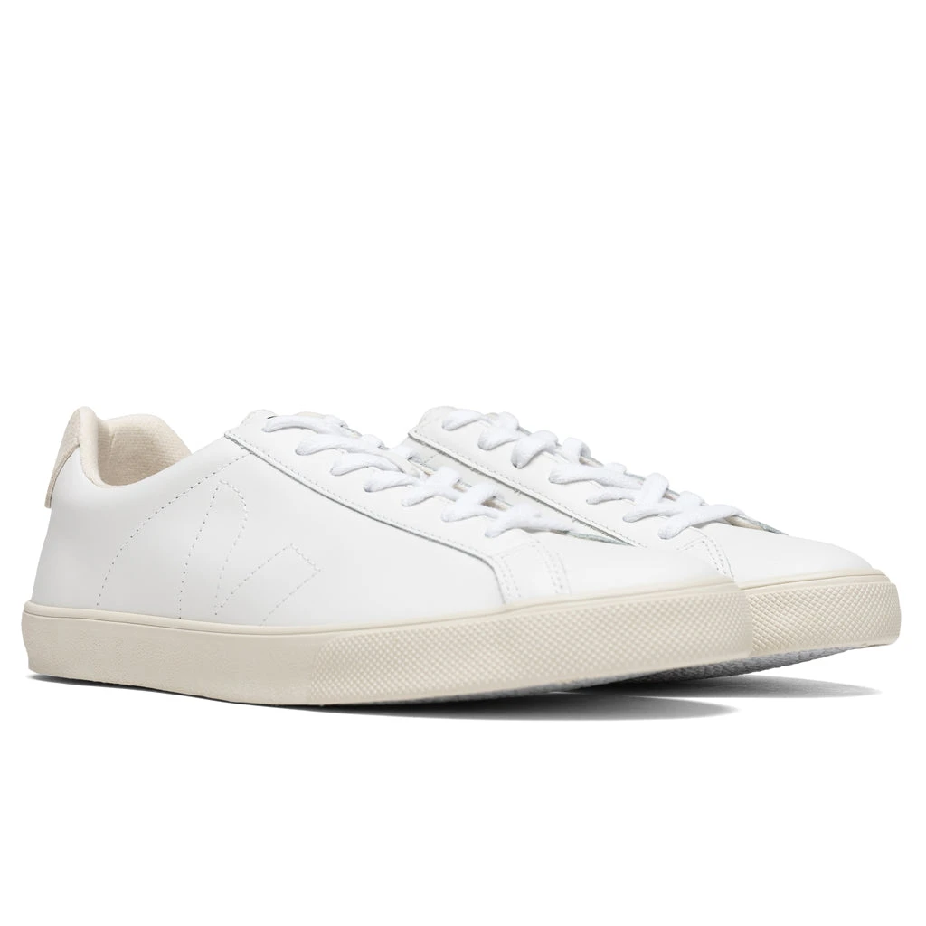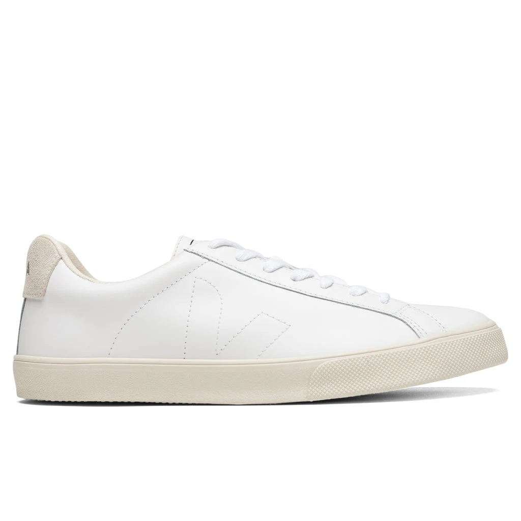 The sought-after Esplar Logo Leather model by Veja showcases the signature ‘V’ motif utilizing a monochromatic white colorway. The sustainable leather upper features recycled polyester lining and a wild rubber outsole from the Amazon Forest contributing to its comfort during times of wear.Â