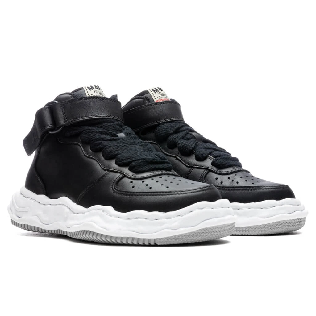 The Maison Mihara brand represents artful expression and individuality, which introduces the Wayne High sneakers in Black. The upper is entirely cow leather, while the sole is met with full rubber. The rubber outsole consists of distressed finishing. For a secure fit, the sneakers are complete with flat, chunky laces.Â