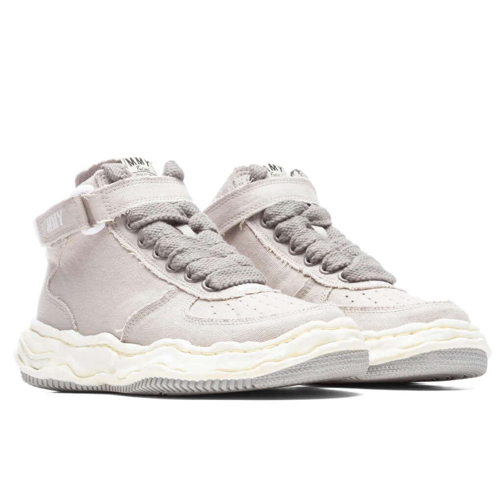 Maison Mihara Yasuhiro’s Japanese avant-garde legacy moves forward with the Wayne High OG Sole Washed Canvas Sneaker. This high-top design sports a front lace-up closure along with a round toe and flat rubber outsole. The signature wavy chunky rubber midsole makes an appearance, while a front touch-strap fastening makes an appearance for additional security. The tongue has received distressed detailing while incorporating a signature logo patch. Additional branding is placed within the leather heel tab, while the cotton canvas upper completes the design.