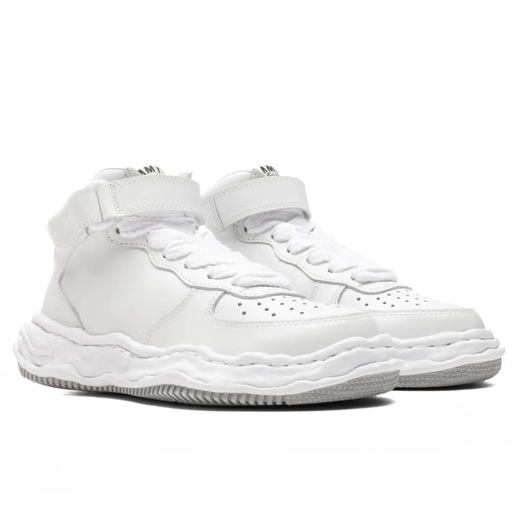 The Maison Mihara brand represents artful expression and individuality, which introduces the Wayne High sneakers in White. The upper is entirely cow leather, while the sole is met with full rubber. The rubber outsole consists of distressed finishing. For a secure fit, the sneakers are complete with flat, chunky laces.Â